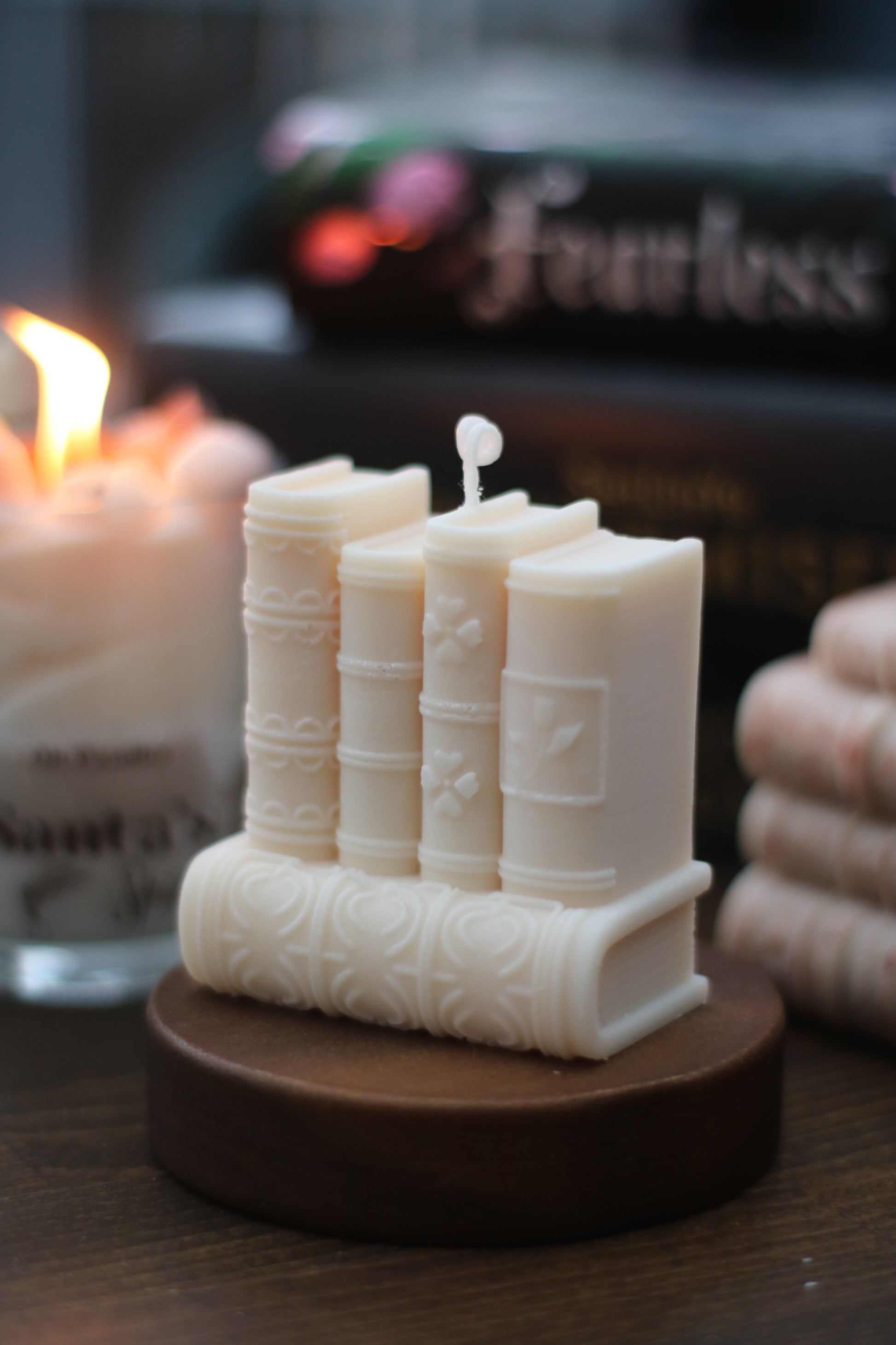 Diese Mini Bücherregal Kerze ist perfekt zum Verschenken für alle Booklover oder hübsche Deko in deinem Bücherregal!